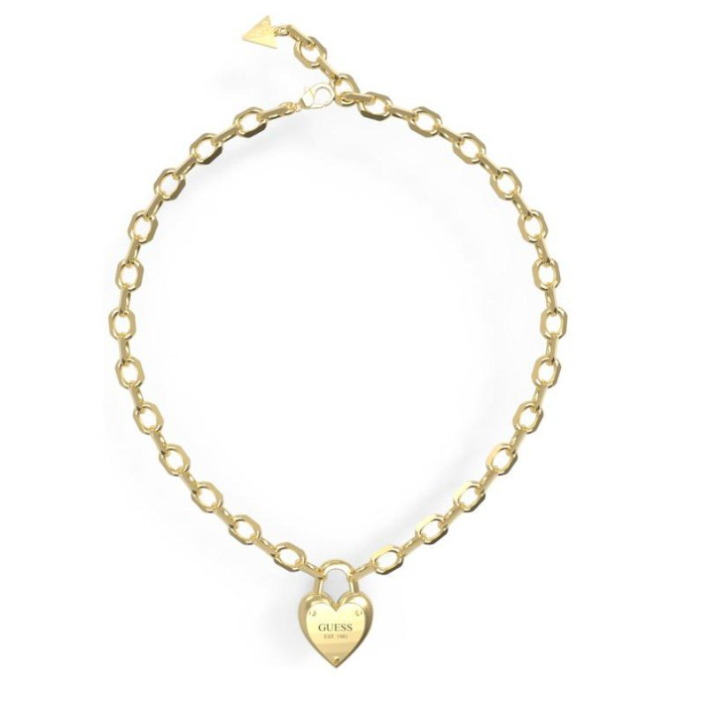 Naszyjnik w kolorze złotym o splocie mocnego łańcucha z zawieszką w kształcie serca.