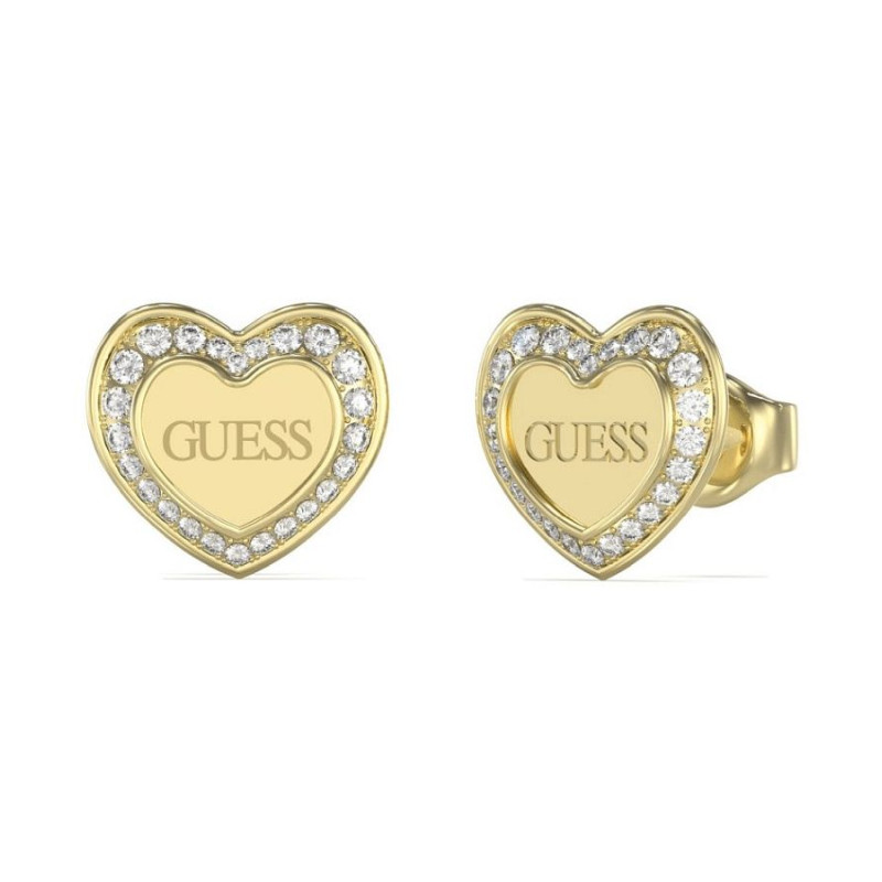 Kolczyki ze stali szlachetnej w kolorze złotym zapinane na sztyft, z kryształową aplikacją.