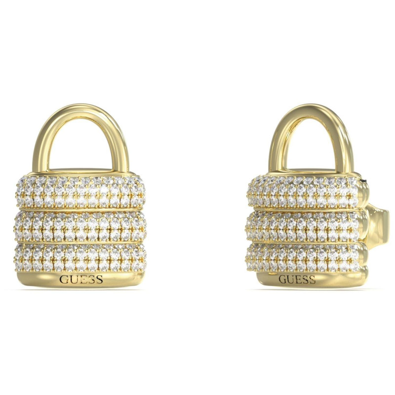 Piękne wysadzane kryształkami kolczyki w kształcie kłódek, zapinane na sztyft.