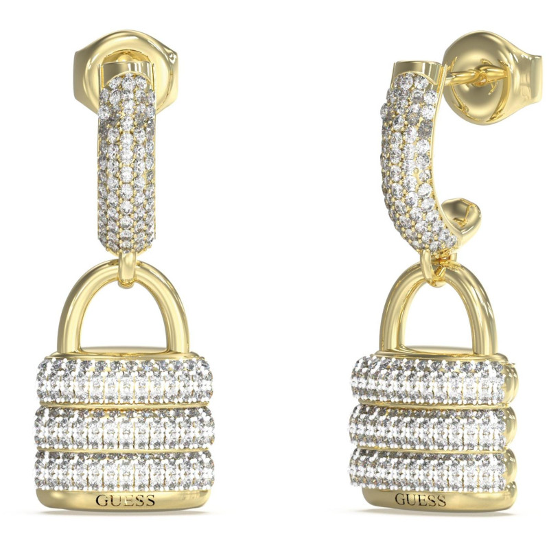 Wysadzane kryształkami kolczyki z wiszącymi kłódkami.