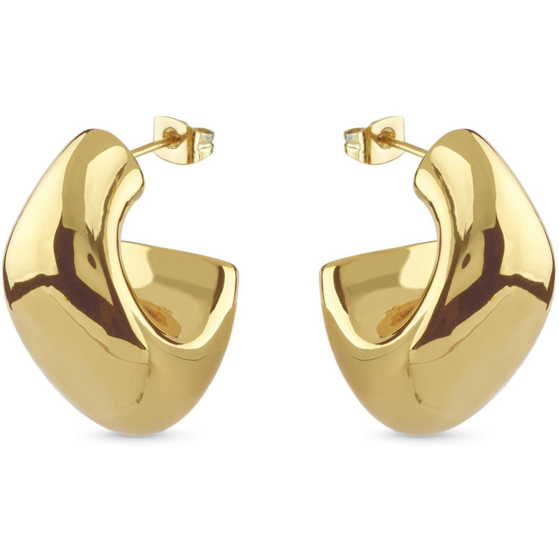 Gładkie, efektownie odbijające światło kolczyki w kolorze złotym, zapinane na sztyft.