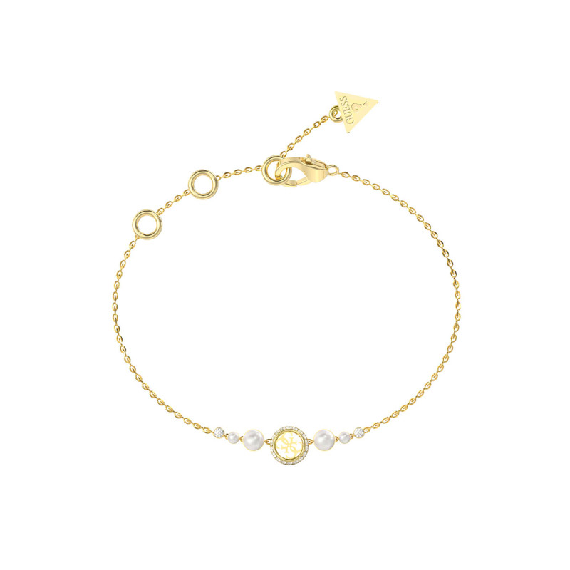 Delikatna bransoletka z kółeczkiem z logiem marki oraz perełkami.