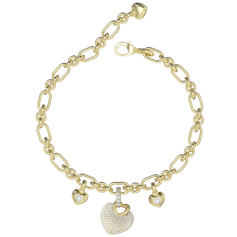 Złocona bransoletka z trzema zawieszkami w kształcie serc z kryształkami.