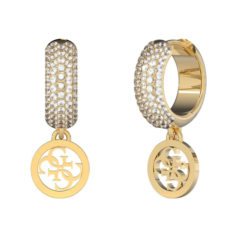 Błyszczące kolczyki koła z zawieszkami z logiem.