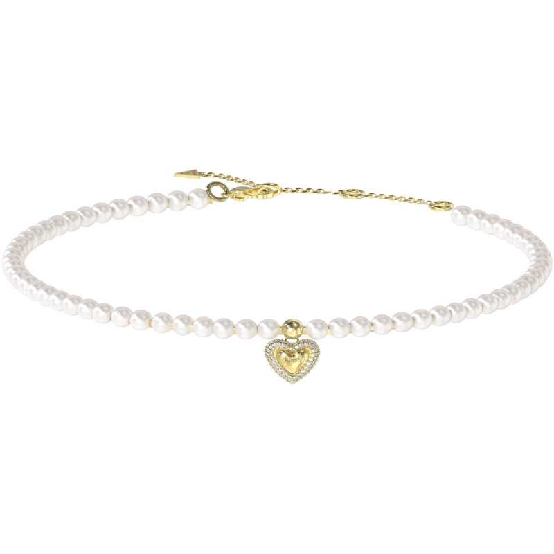 Perłowy naszyjnik z wiszącym serduszkiem wysadzanym kryształkami.