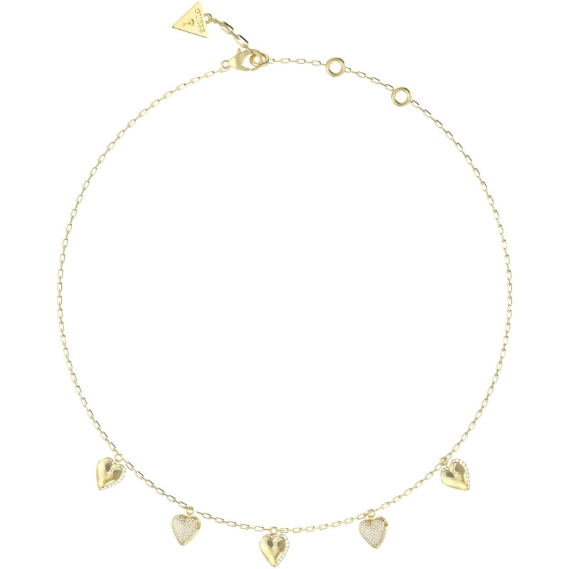 Delikatna celebrytka ze stali szlachetnej w kolorze złotym zdobiona wiszącymi serduszkami z kryształkami.