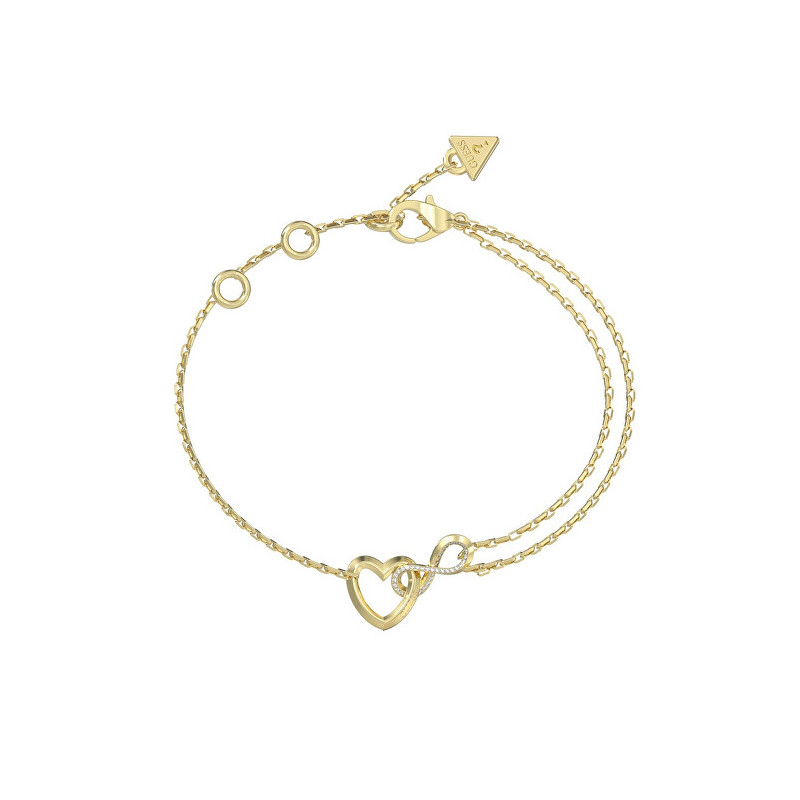 Bransoletka w kolorze złotym zdobiona serduszkiem i nieskończonością.