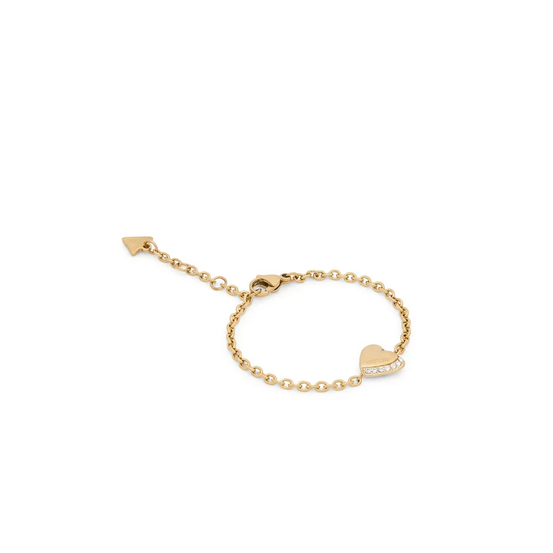 Złocona bransoletka o grubszym splocie z serduszkiem zdobionym kryształkami.