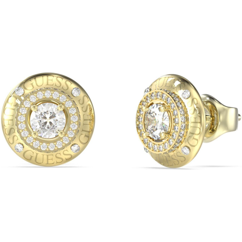 Złocone kolczyki zapinane na sztyft, zdobione kryształami.