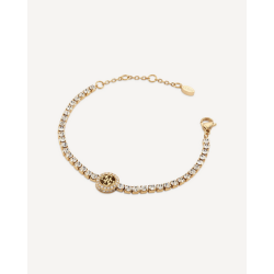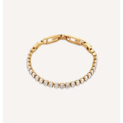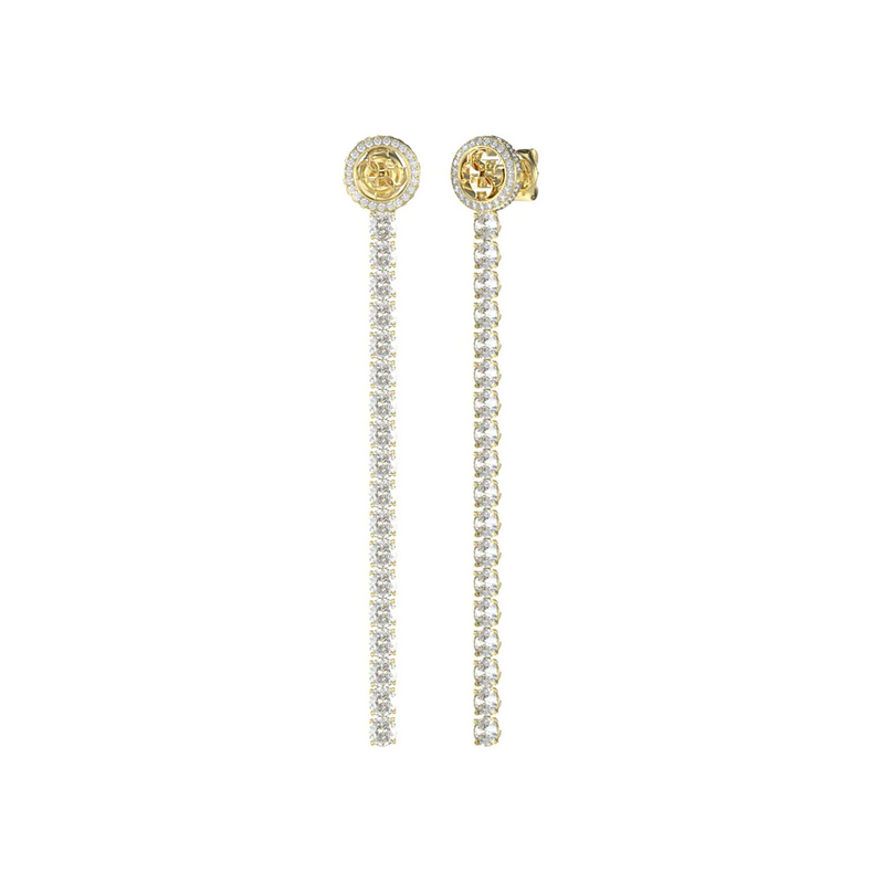 Efektowne, wiszące kolczyki w kolorze złotym zdobione kryształowym pasmem.