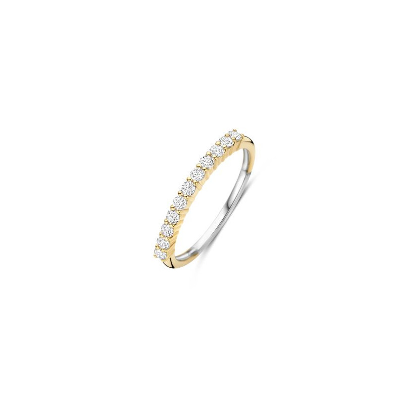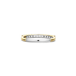 Piękny pierścionek wykonany ze srebra, częściowo pozłacany, zdobiony cyrkoniami.
