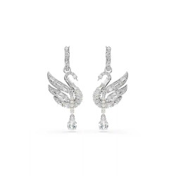 Bransoletka w kolorze różowego złota, częściowo usztywniona. Zdobiona jasnym kryształkiem oraz łabędziem z czarnymi kamieniami.