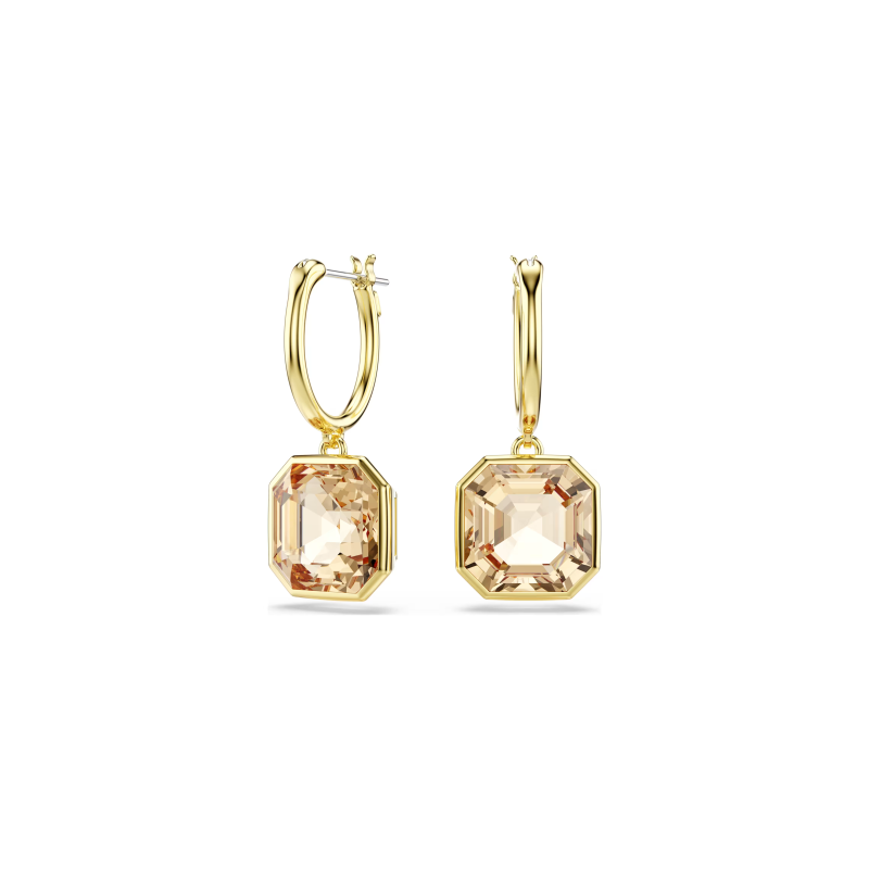 Złocone kolczyki z szampańskimi, geometrycznymi kryształami.