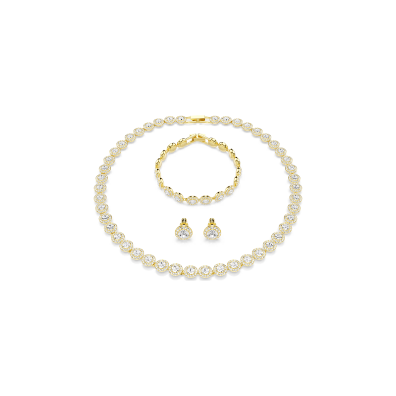 Elegancki zestaw w kolorze złotym stworzony z bezbarwnych kryształów.