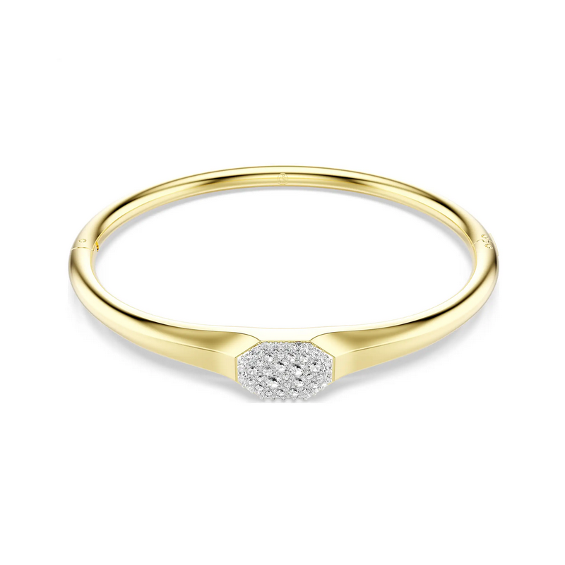 Sztywna bransoletka w kolorze złotym zdobiona kryształkami.