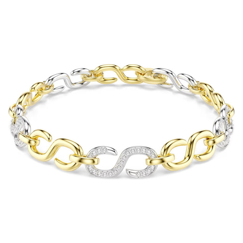 Ogniwkowa bransoletka składająca się z dużych oczek częściowo wysadzanych kryształkami.