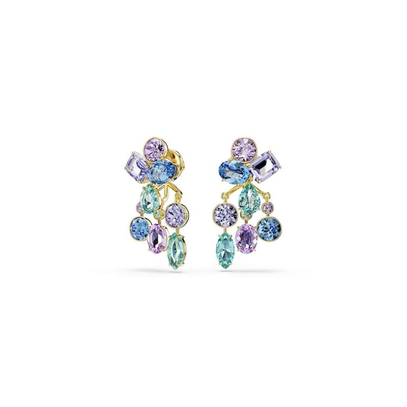 Niepowtarzalne kolczyki stworzone z precyzyjnie dobranych kolorowych kryształów o rozmaitych szlifach. Można je nosić jako dłuższe lub delikatniejsze, bardziej przylegające do płatka ucha.