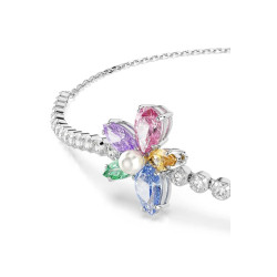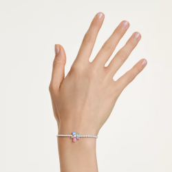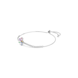 Urocza bransoletka z wygodnym, ściąganym zapięciem zdobiona kolorowym, kryształowym kwiatem i jasnymi kamyczkami.