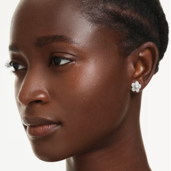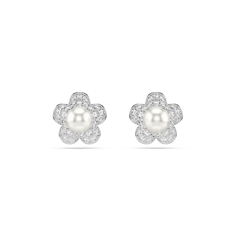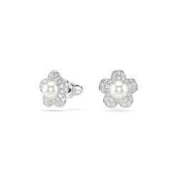 Delikatne kolczyki kwiaty zdobione perłą i drobnymi kryształkami.