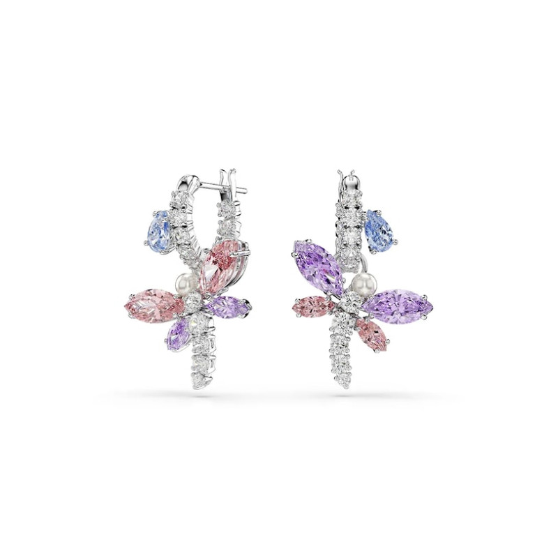 Kryształowe, wiszące kolczyki z kolorowymi ważkami.