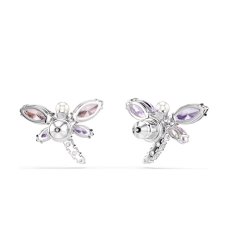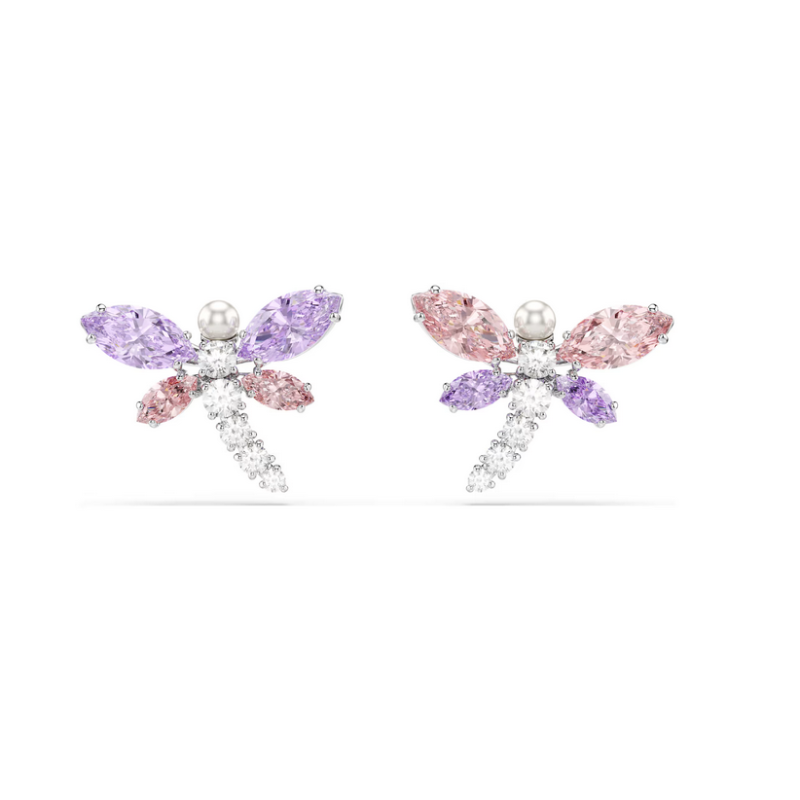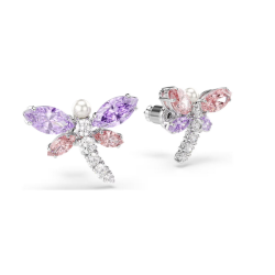 Błyszczące kolczyki zapinane na sztyft w kształcie ważki, zdobione kamieniami.