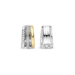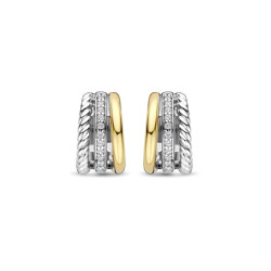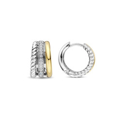 Kółka stworzone z trzech pasków: plecionego jak sznur, wysadzanego cyrkoniami i złoconego.