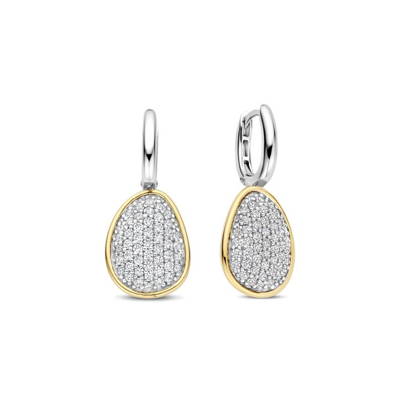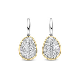 Wiszące kolczyki wysadzane kryształkami, częściowo złocone.