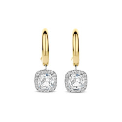 Pozłacane kolczyki z efektownymi, wiszącymi kamieniami.