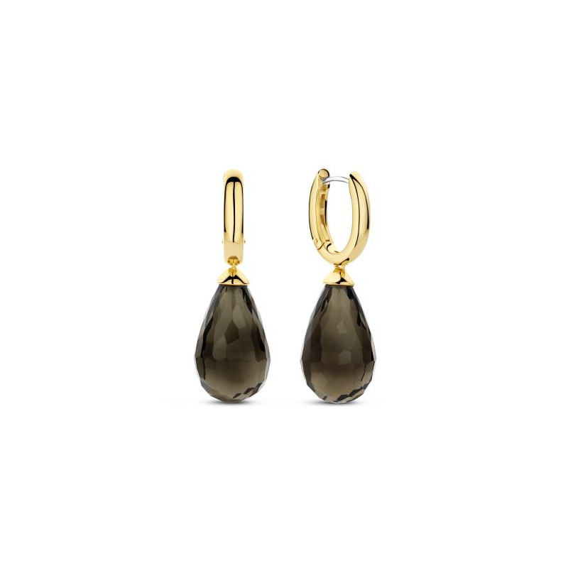 Efektowne kolczyki z podłużnym, szaro-brązowym kamieniem o wyjątkowym szlifie efektownie odbijającym światło.
