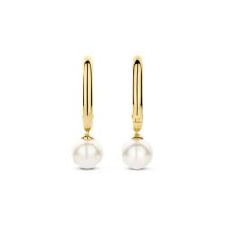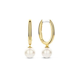 Owalne kolczyki w kolorze złotym, ozdobione perłami.
