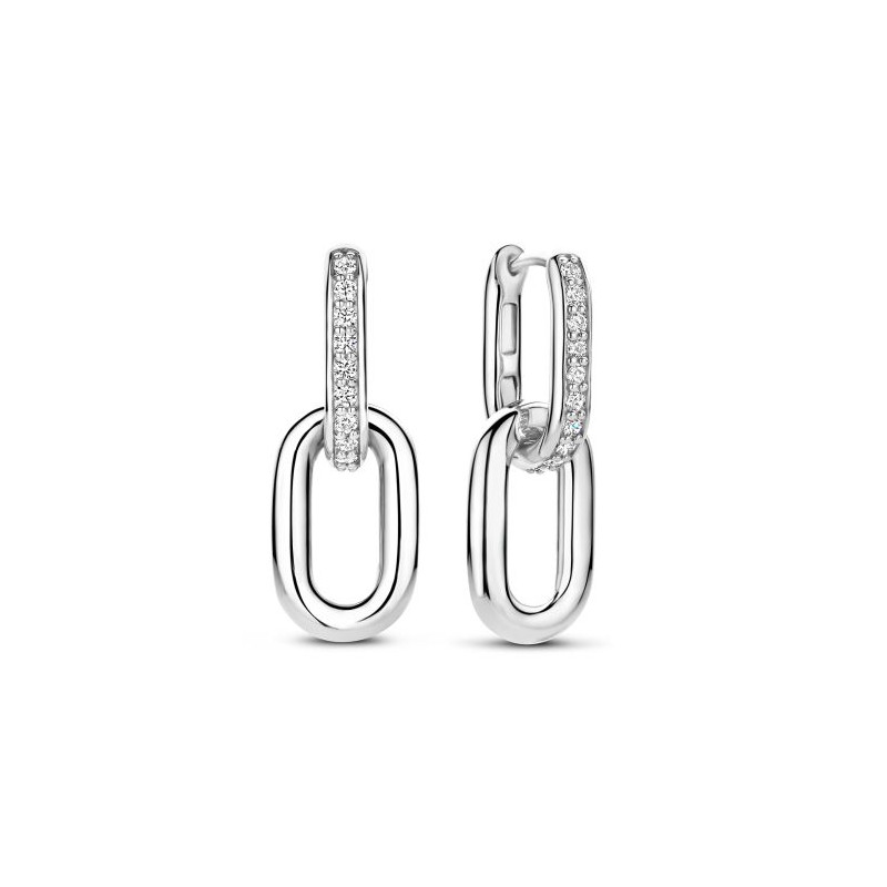 Wiszące kolczyki w typie łańcuszkowych ogniw z kryształową aplikacją.
