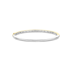 Sztywna bransoletka zdobiona kryształkami, złocona.