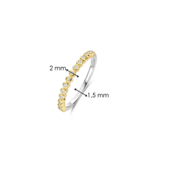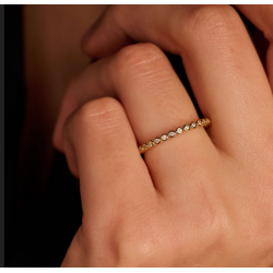 Delikatny pierścionek w kolorze złotym z drobnymi, okrągłymi oczkami.