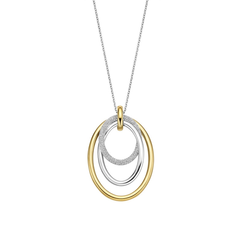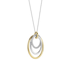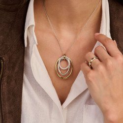 Elegancki naszyjnik o owalnym kształcie z kryształową aplikacją, częściowo złocony.