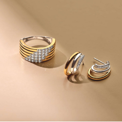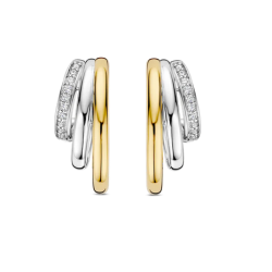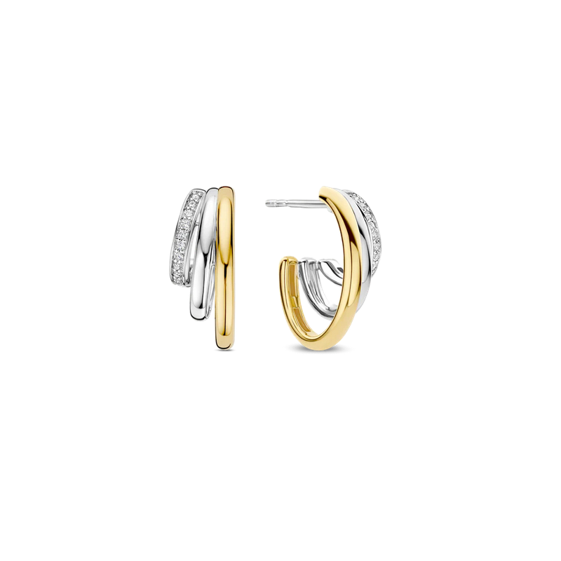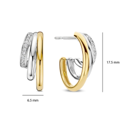 Srebrne kolczyki zdobione drobnymi cyrkoniami, częściowo złocone.